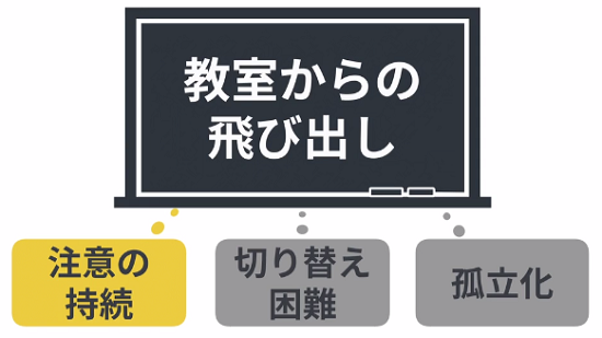 1分動画,学校,保育園,幼稚園,学童,子供,子ども,こども,ADHD,注意欠陥,多動性,衝動性,教室,クラス,出ていく,出る,立ち歩く,いなくなる,逃げ,注意,持続 | |