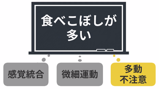 1分動画,学校,保育園,幼稚園,学童,子供,子ども,こども,ADHD,注意欠陥,多動性,衝動性,給食,食事,食べ,こぼす,距離,食器,お皿,スプーン,フォーク | |