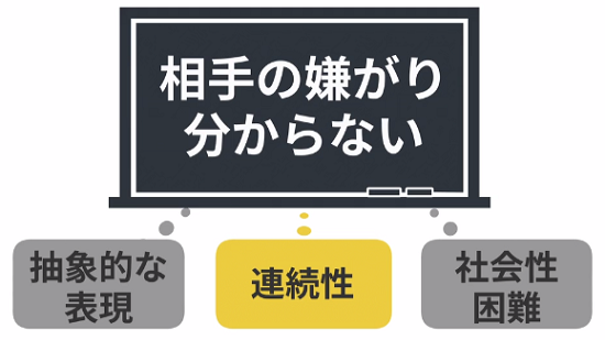 1分動画,学校,保育園,幼稚園,学童,子供,子ども,こども,ASD,自閉症,スペクトラム,相手,気持ち,分からない,嫌なこと,繰り返す | |