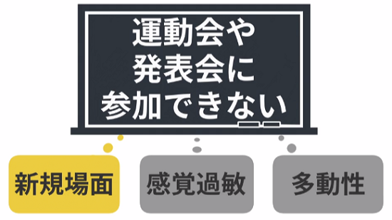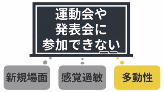 1分動画,学校,保育園,幼稚園,学童,子供,子ども,こども,ADHD,注意欠陥,多動性,衝動性,集会,朝会,大人数,体育館,列,逃げ,聴覚,過敏,視界,目標 | |
