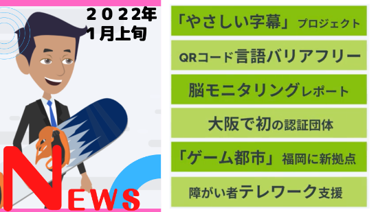 10分動画,ニュース,news,2022年,1月,上旬,イークラウド,PIJIN,クラウドファンディング,グローバルインフォメーション,脳モニタリング,発達障害,eboard,SDGs,字幕,グッドガバナンス,HA-HA-HA,みねやま,就労移行,ルーツ,eスポーツ,manaby,大宮,テレワーク | |