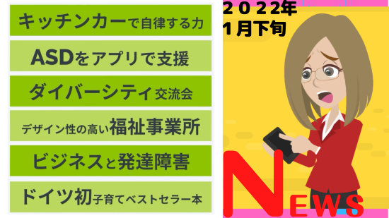 10分動画,ニュース,news,2022年,1月,下旬,笑顔グループ,ぎふ中央高等学院,キッチンカー,IMPUTE,アプリ,自閉症,ReBit,ジェンダー,LGBTQ,SOCIALSQUARE,上熊本,就労移行,飛鳥新社,ダニエレ・グラフ,カティア・ザイデ,ビジネス・ブレークスルー,リカレント,岩波明, | |